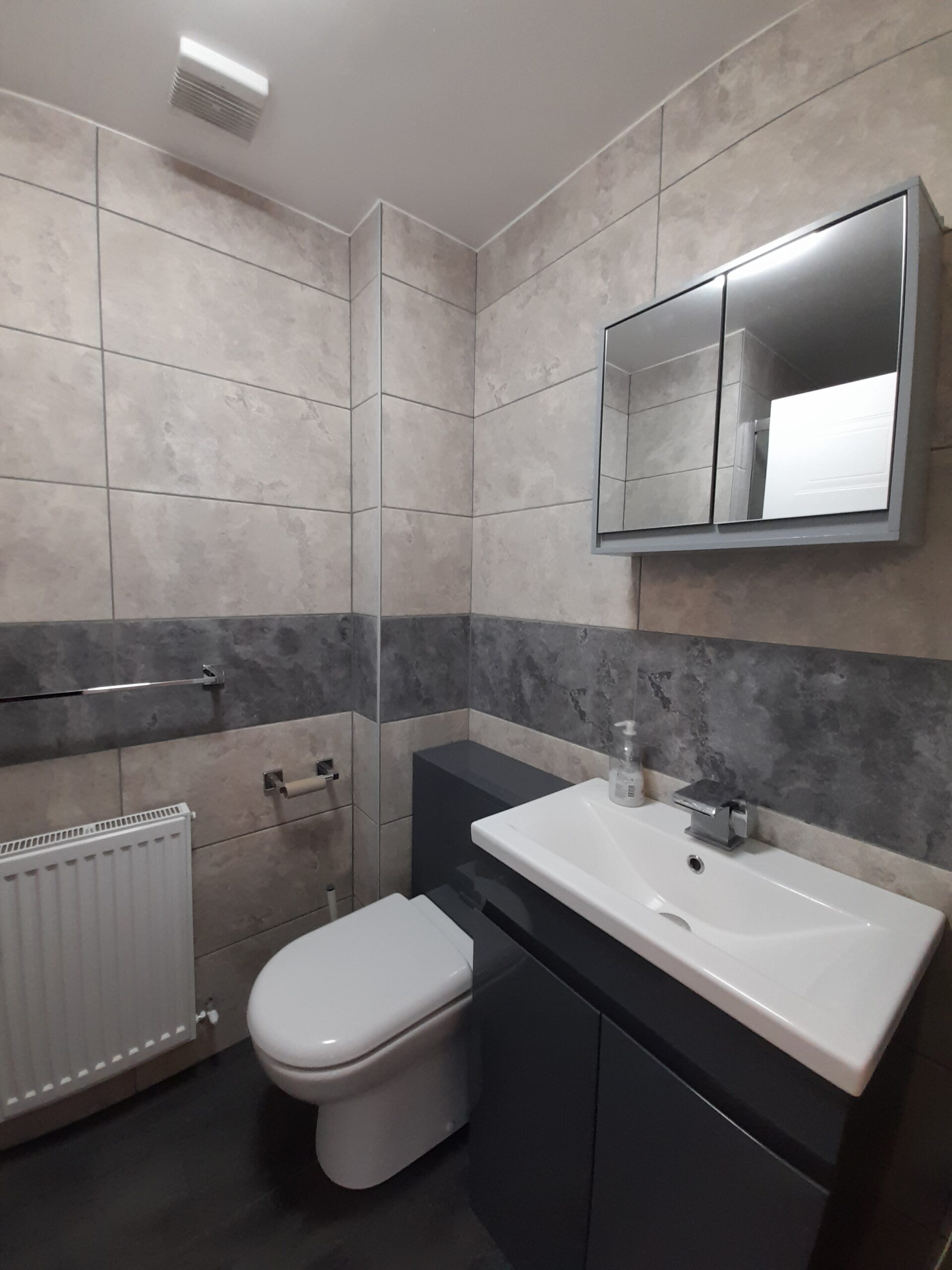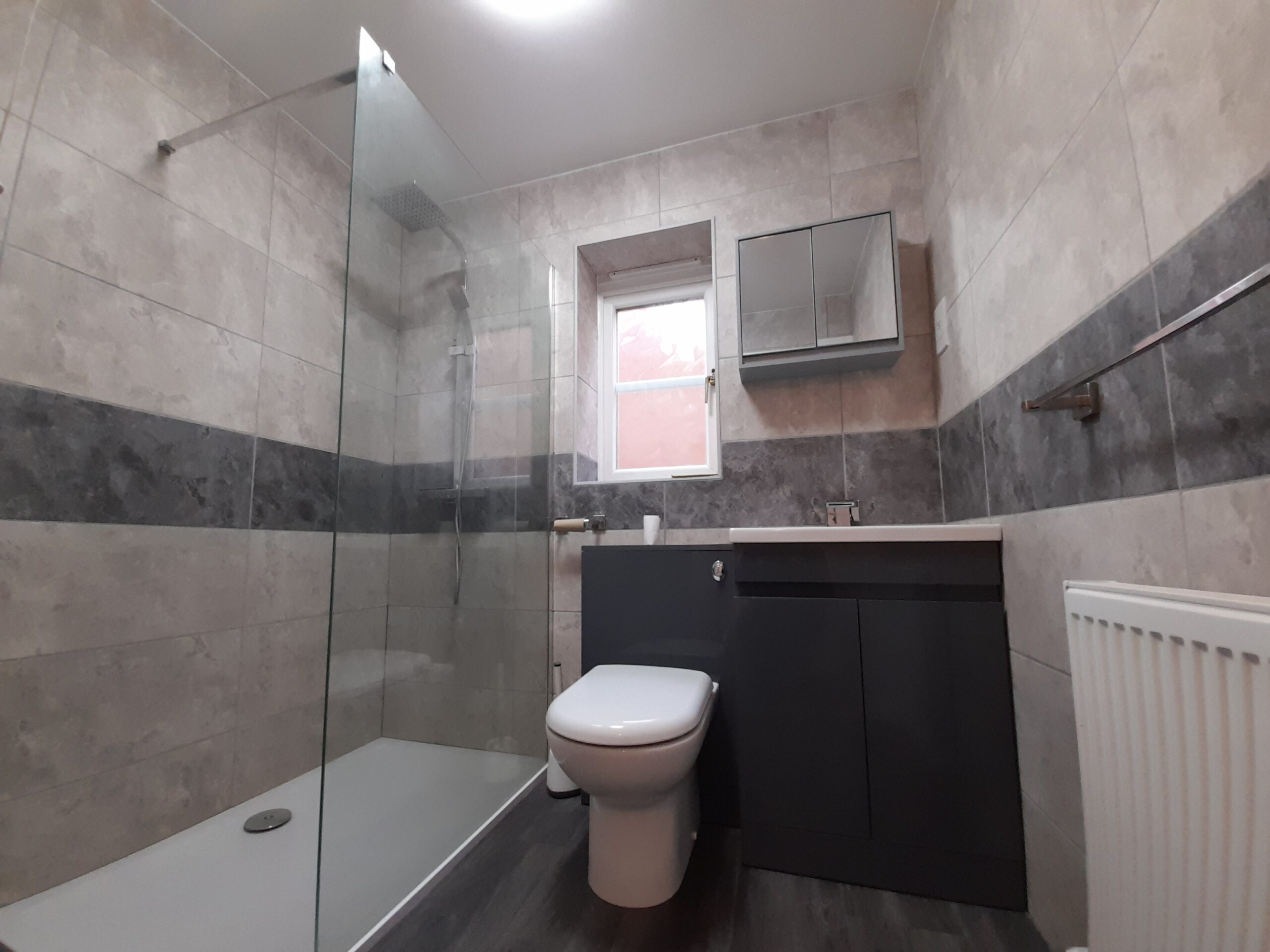 To the front of the house is a drive way with access for next door and a garage. As you go through the front door you are on the upper level of the house which is comprised of a family shower bathroom, and 4 bedrooms (3 double and 1 single). There are built in wardrobes in 2 of the bedrooms, and the master has a shower en suite. Also on the upper level is access to the garage.