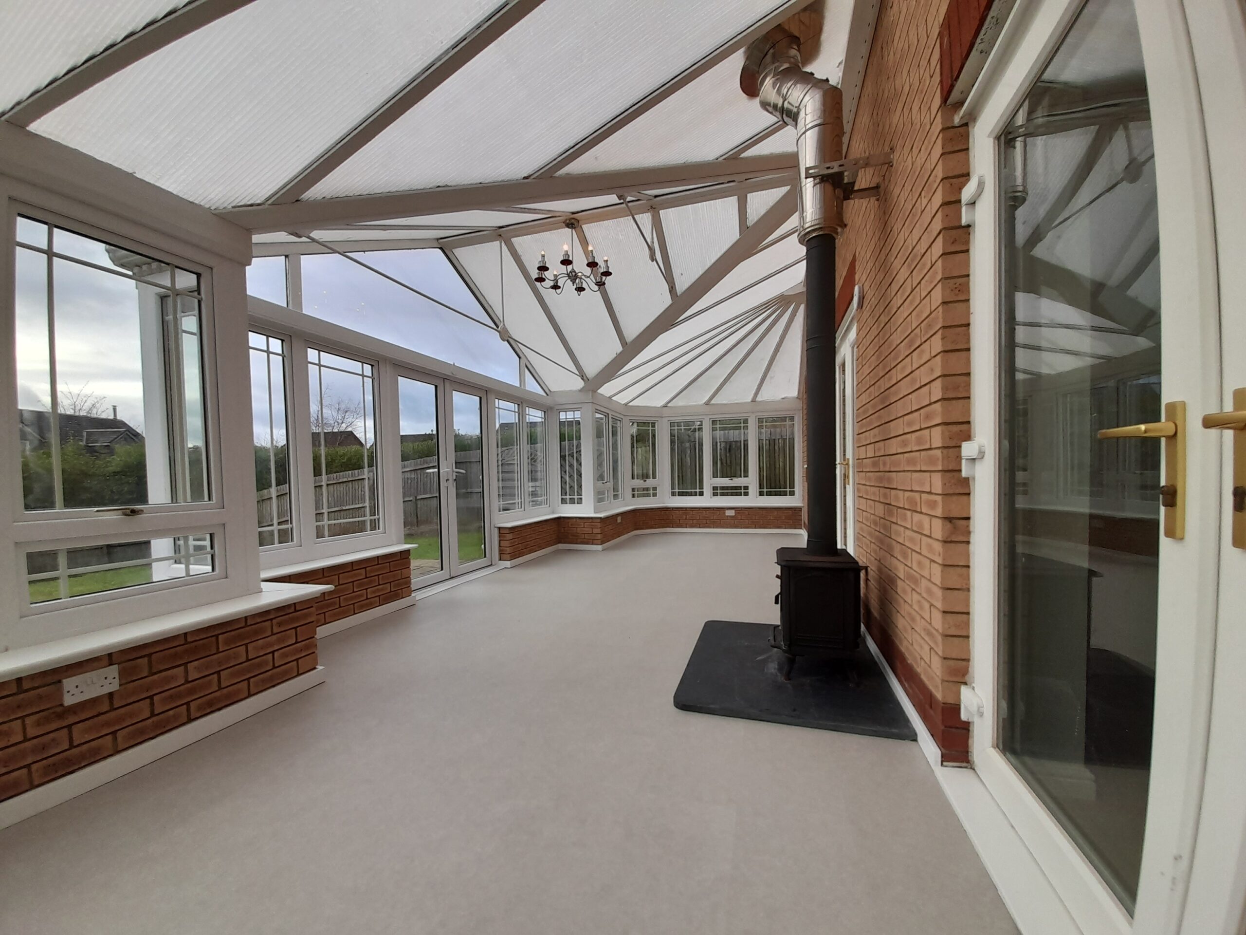 On the lower level there is a downstairs w.c., a dining room leading to large kitchen and a lounge with a gas fire. Leading off the lounge and dining is a conservatory with a log burner, which in turn leads out to the garden.